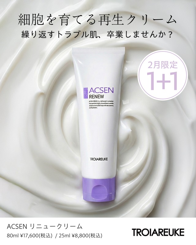 ⑤ACSENリニュークリーム80mlー揺らぎ肌・ピーリング前後に◎肌再生 美容液クリーム